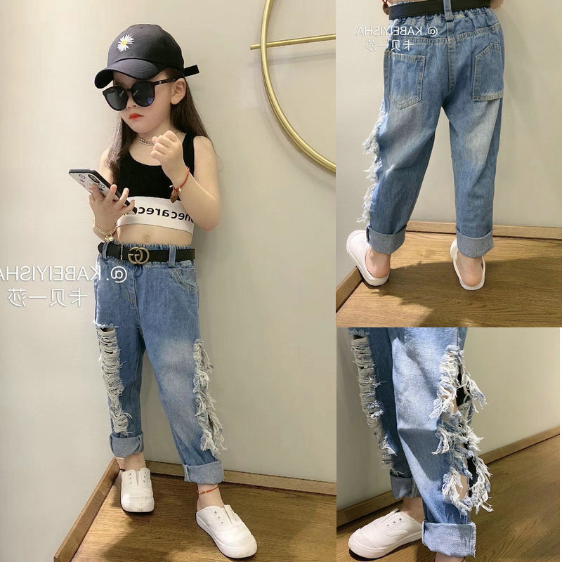 Amazon 子供服 女の子 デニムパンツ 子ども服 キッズ用 韓国風 ダメージ ジーンズ 長ズボン ロングパンツ ジュニア レジャー ボトムス130 160cm パンツ 通販